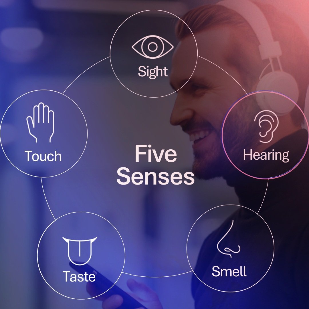 Multisensory branding is a strategic approach that uses a combination of sensory cues - sound, sight, touch, motion, and even voice — to build stronger brand recognition and deeper emotional engagement. Think beyond logos and colors. Think audio logos, haptic feedback, spatial sound, voice UX, branded sound environments, and the subtle vibrations of tech devices that reinforce identity.
