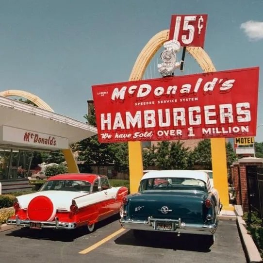 373019 02: A 1955 Ford, left, and a 1955 Oldsmobile are parked in the lot of the McDonald's museum July 14, 2000 in Des Plaines, IL. On this site April 15, 1955 Ray Kroc, founder of the McDonald's franchise, opened his first restaurant. 45 years later McDonald's Corporation is the largest and best-known food service retailer with nearly 28,000 restaurants serving more than 43 million people a day in 119 countries. (Photo by Tim Boyle/Newsmakers) Getty Images